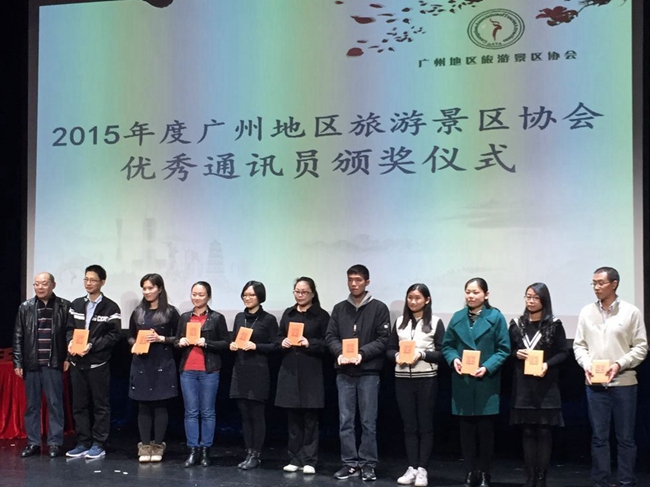 3月16日下午,“海丝之路 创新共赢—广州地区旅游景区协会第三届四次会员大会”在广州正佳广场举行。大会上,余荫山房旅游服务中心周晓婷同志荣获广州地区旅游景区“优秀通讯员”称号!