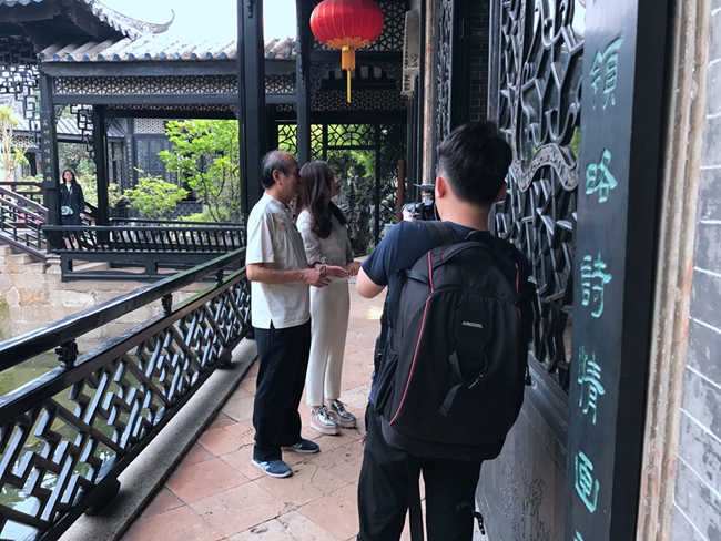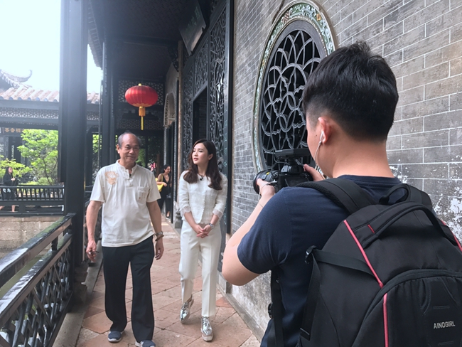 4月3日,著名书法家陈秋明应邀在余荫山房参加广东电视台新闻频道人文专题片《走读广东》的录制,该节目将于近期与观众见面。