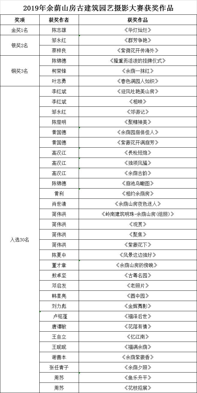 2019年余荫山房古建筑园艺摄影大赛结果出炉!